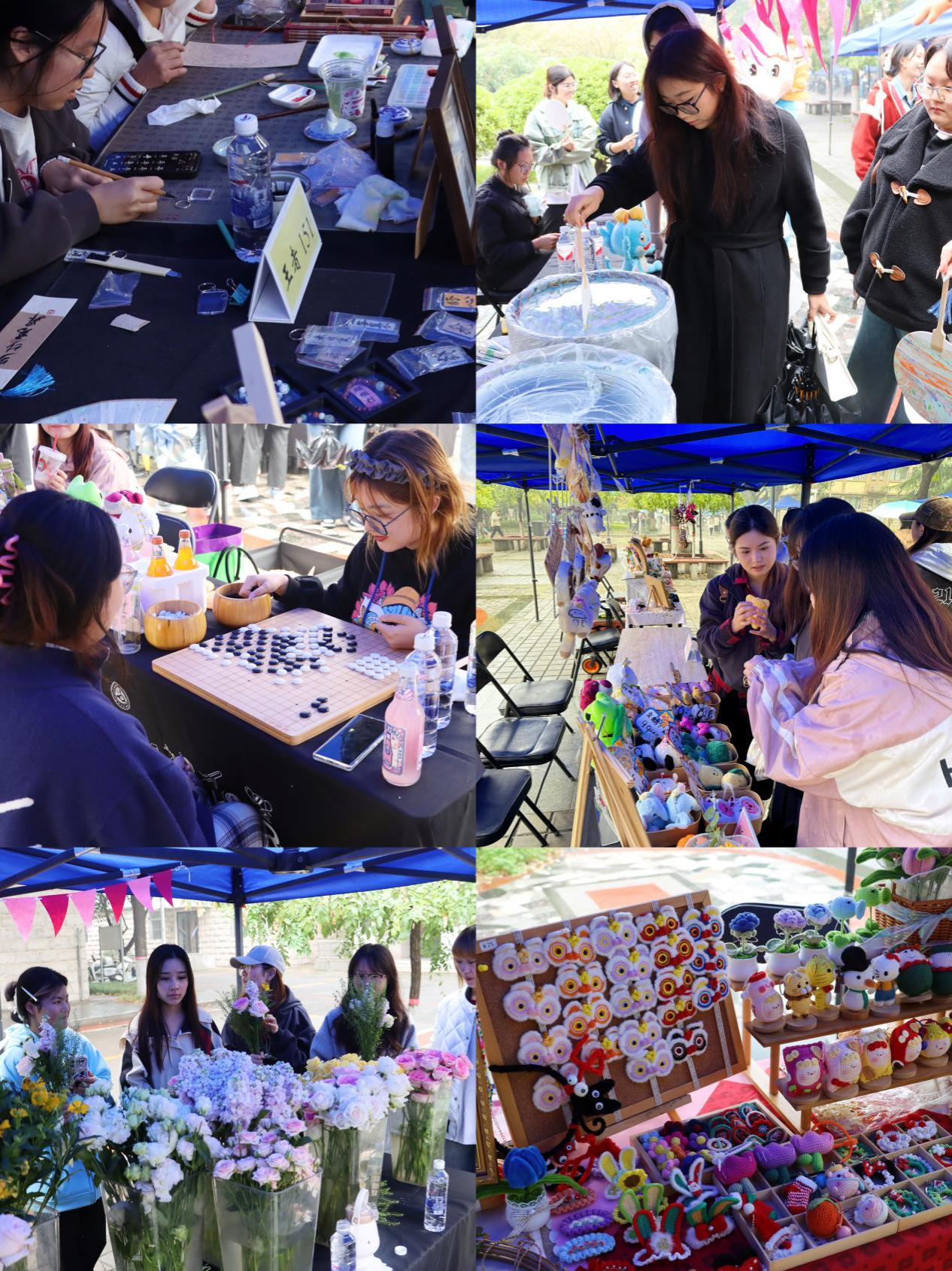 本次创客市集展区分为多个摊位,各类创意产品琳琅满目。参与者中不仅有来自各学院的学生、创客团队,更有校友企业。展品涵盖了手工艺品、科技创新、艺术作品等多个领域,充分展示了我校学生强烈的创新意识和卓越的实践能力。