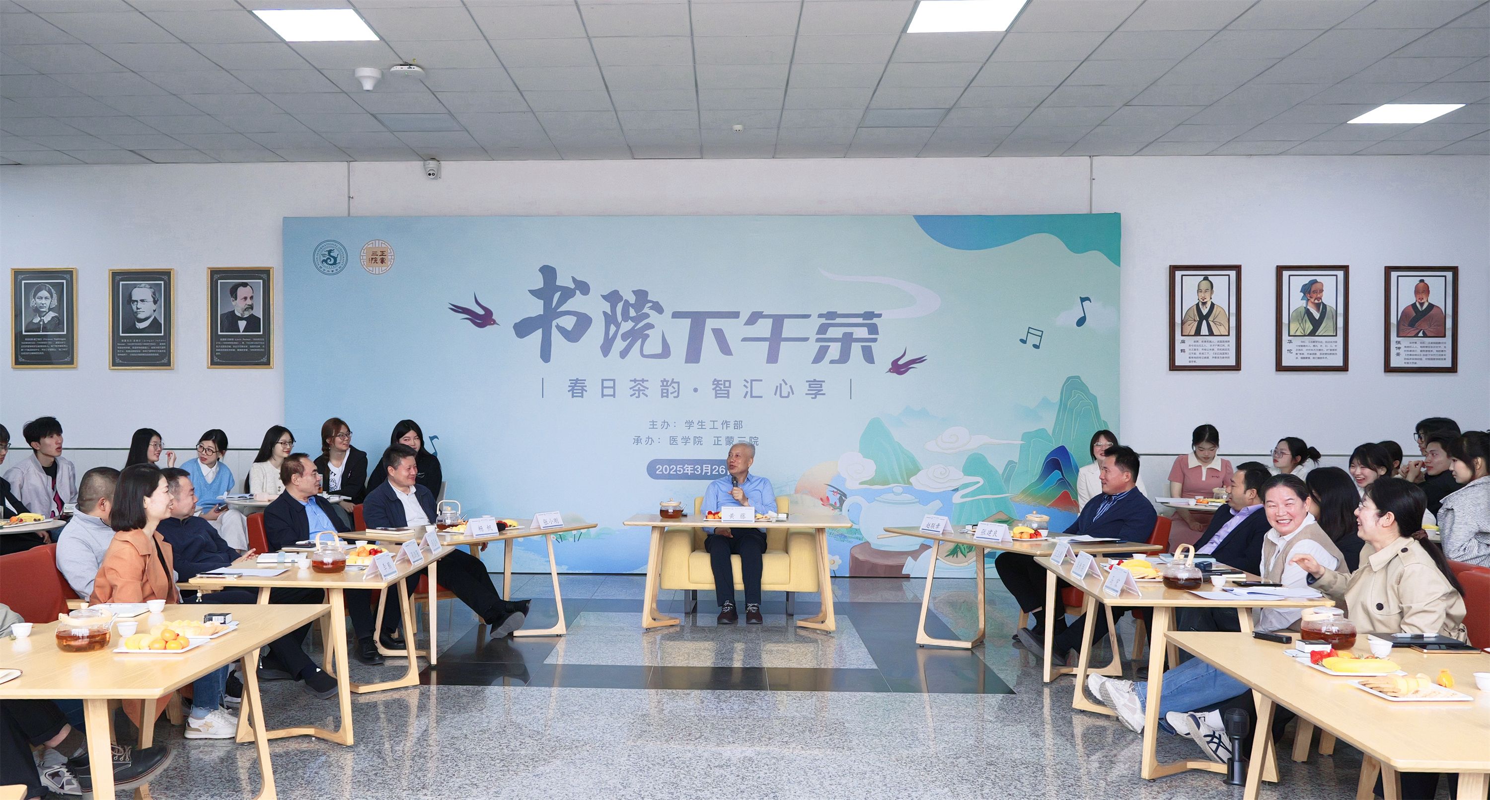 春日茶韵,智汇心享。3月26日下午,第10期“书院下午茶”活动在西安外事学院医学院教学楼温馨开场。学校理事长、校长黄藤,保障部部长张小刚,学生工作部部长赵联章,医学院院长杨帆以及各部室工作负责人与同学们齐聚一堂、亲切交流,解答同学们学习生活中的疑问。黄藤校长与同学们畅聊人生,勉励同学们“向道而行”,践行“明道、修身、利他、共荣”。