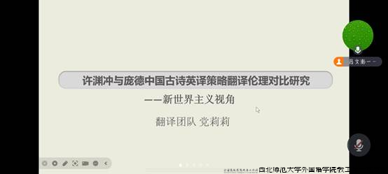 2024年7月2日,外国语学院翻译研究学术团队线上举办研讨会。首先,吕文澎老师对两位主讲人做了简要介绍。然后,董晓华副教授做了题为《林语堂<道德经>英译本中的互文指涉及其系统关系》的报告,党莉莉副教授做了题为《许渊冲与庞德中国古诗英译策略翻译伦理对比研究》的报告。本次研讨会由外国语学院教工第一党支部书记兼翻译研究学术团队负责人吕文澎副教授主持,团队成员和研究生近30人参加了本次活动。