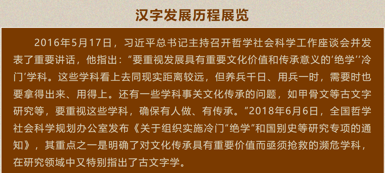 新疆财经大学中国语言文化学院在新疆财经大学至善楼二楼推出“传承文字底蕴 创新文字理念”——汉字发展历程展览,为期一个学期。