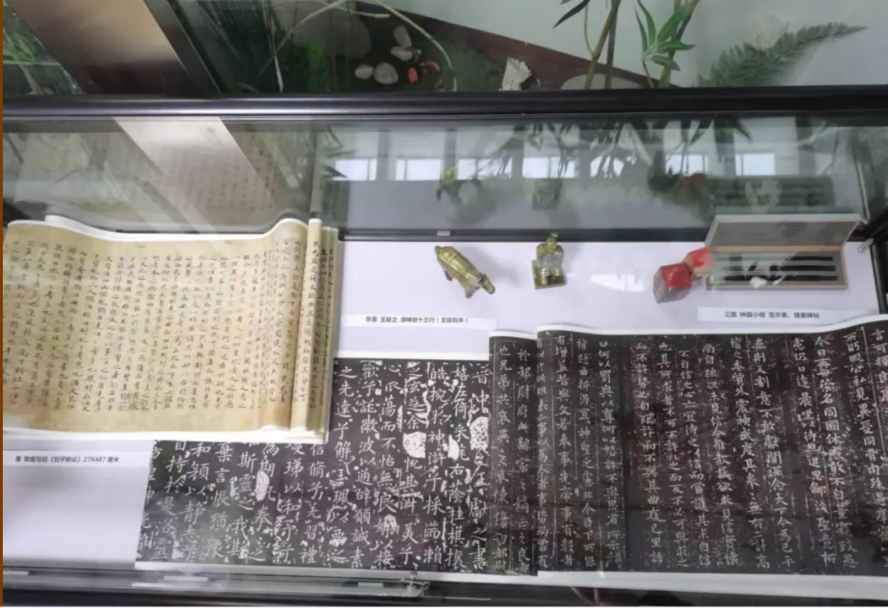 展品:北魏始平公造像记龙门二十品拓片、北魏张玄墓志铭(楷书)、站立俑两尊、学生篆刻作品等。