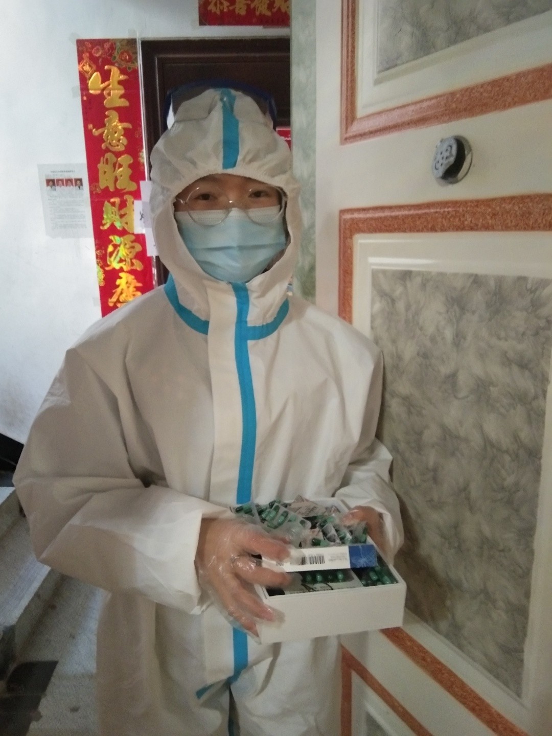全院学子积极响应号,其中经济学2019-4班的颜其照同学负责社区例行药品输送,穿着防护服,一家一户挨个送药,跑完负责的区域,大冬天都能热出一身汗。虽然很辛苦,但是她表示:其实这点辛苦不算什么,每次送完药,心里都特变满足,感觉我也为社区建设发展贡献了一份力量。