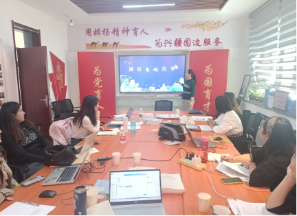 主题党日活动,坚持习近平新时代中国特色社会主义思想首学要求,刘艳副院长领学了《习近平在第三届“一带一路”国际合作高峰论坛开幕式上的主旨演讲》,对和平合作、开放包容、互学互鉴、互利共赢的丝路精神进行了讲解。韩有栋和文婧分别领学了习近平总书记的2篇重要文章《扎实推动教育强国建设》《努力成长为对党和人民忠诚可靠、堪当时代众人的栋梁之才》。乔莉老师为大家分享了廉政家风故事要以史为鉴,深入学习清廉精神、为民精神、务实精神,切实做到见贤思齐、见廉思齐、见俭思齐,不断增强廉政意识,提高履职本领,以更强的使命感和责任感积极投入到教育事业。张悦和高艇老师分别做了个人心得体会分享。