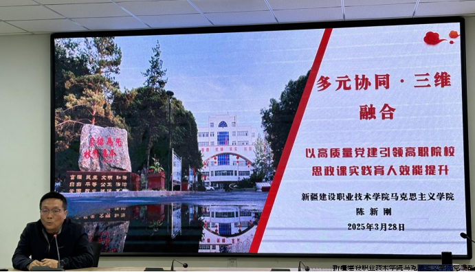 在交流研讨环节,我院马克思主义学院党支部书记陈新刚以“多元协同·三维赋能——以高质量党建引领高职院校思政课实践育人效能提升”为题进行了专题交流。陈新刚书记就新疆建设职业技术学院在思政课实践育人方面取得的经验做法进行了分享,以思政课实践教学品牌建设、实践手册、学生社团和校园文化的协同作用,生动诠释了高质量党建引领下的思政课实践育人新范式,为其他高职院校提供了可借鉴的实践经验,受到了与会专家学者和思政课教师的充分肯定。