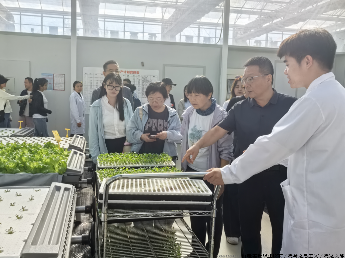 随后,教师们步入甬库同心村的“同心共富工坊”数字农业植物工厂。这座采用无土栽培、智能温控、精准滴灌等先进技术的现代农业设施,不仅打破了传统农业的季节和地域限制,常年生产各类高品质绿叶蔬菜,更起到了农业技术示范推广的作用,为当地农业现代化转型提供了新思路,让教师们对“智慧农业”助力乡村振兴有了更直观的认识。