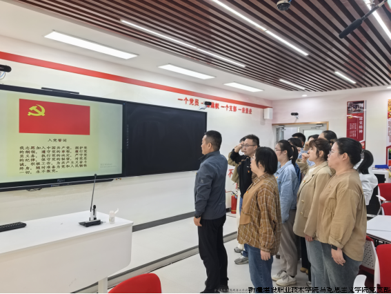 接着,全体党员在党支部书记陈新刚的带领下重温入党誓词,铿锵有力的誓言彰显了党员们的初心和使命,进一步坚定为党和人民事业奋斗的决心。
