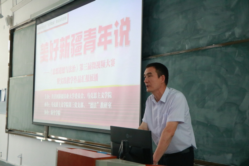 为深入贯彻落实习近平总书记关于铸牢中华民族共同体意识的重要论述,贯彻落实总书记关于新疆工作重要讲话重要指示批示精神,6月2日下午,由马克思主义学院教工第三党支部、“德法”教研室主办、新生学院协办的新疆农业大学“大思政课”建设系列活动:“美好新疆青年说”——《思想道德与法治》第三届微视频大赛暨实践教学作品汇报展播在亚心校区基举行。