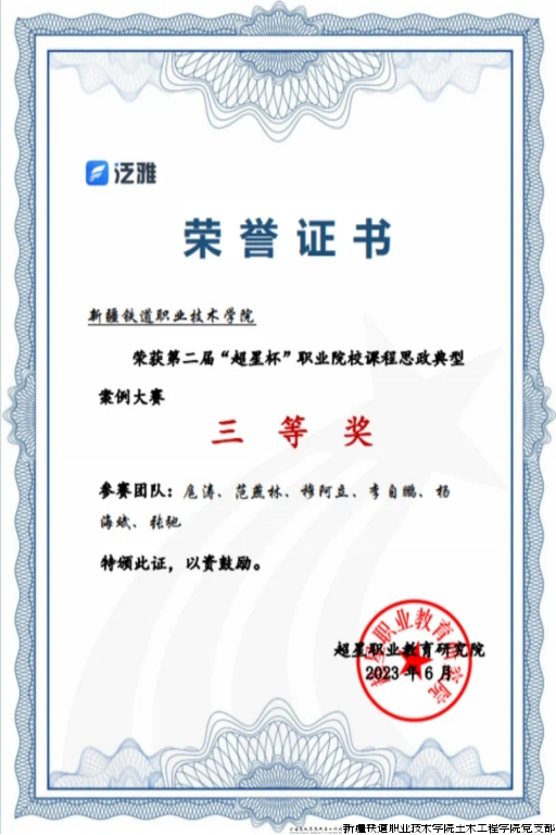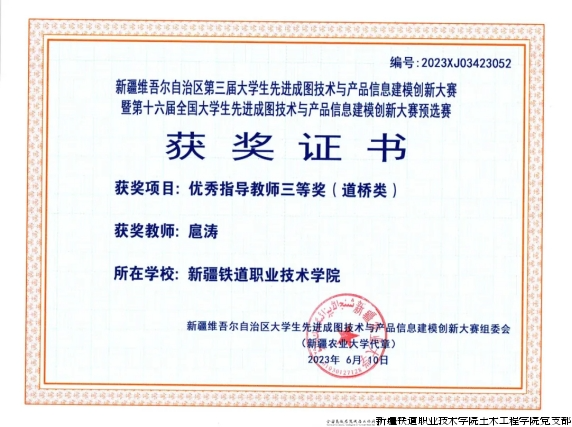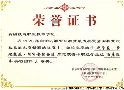 2023年,土木工程学院组织全院师生参加竞赛130余人次,在大赛中取得的优异成果,获得奖项42个,其中,国家级奖项6个,自治区级奖项15个;行业类奖项11个,校级奖项10个。通过参加大赛,师生专业实践能力和综合职业素质得到进一步培养,达到了“以赛促学,以赛促教,以赛促改,以赛促建”的目的。