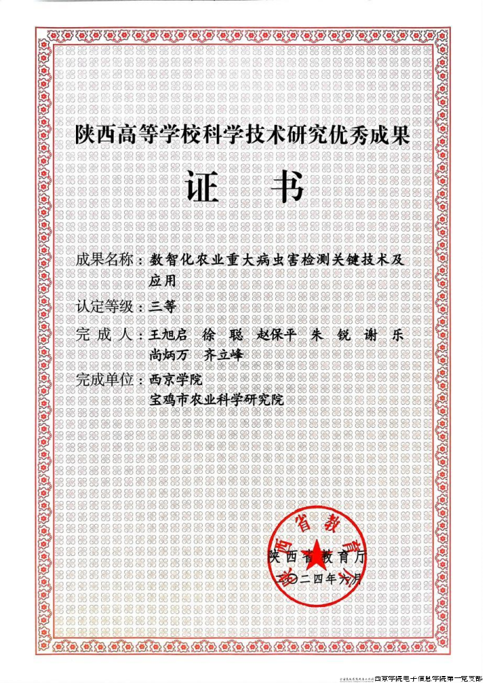 实践育人,书写乡村振兴“新答卷”。“智慧果园管理系统让每亩增收超千元!”在周至县田间地头,果农对支部研发的病虫害AI识别系统赞不绝口。党员教师王祖良教授带领学生研发猕猴桃品质检测系统,服务陕西猕猴桃主产区超5万亩,帮助果农增收上千万元,相关成果获“中国国际大学生创新大赛”省级银奖。支部教师王旭启研究成果“数智化农业重大病虫害检测关键技术及应用”获得2024年陕西高等学校科学技术研究优秀成果三等奖。通过“党建+学科”深度融合,支部为乡村振兴重点区域开展技术培训百余次,惠及村民数千人。与此同时,与大华、研华、中航富士达、华澜微电子等50余家企业共建校企联合培养基地,年均签订横向课题金额突破2000万元,形成“基础研究—技术攻关—产业转化”全链条创新体系。
