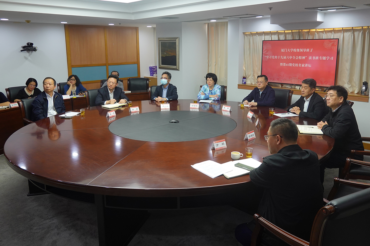 为深入学习领会党的十九届六中全会精神,12月9日下午,厦门大学举办校级领导班子“学习党的十九届六中全会精神”读书班专题学习暨第65期党校名家讲坛,邀请中国社科院马克思主义研究院党委书记、副院长,研究员、博士生导师辛向阳在线做《从四个维度看十条历史经验》专题报告。