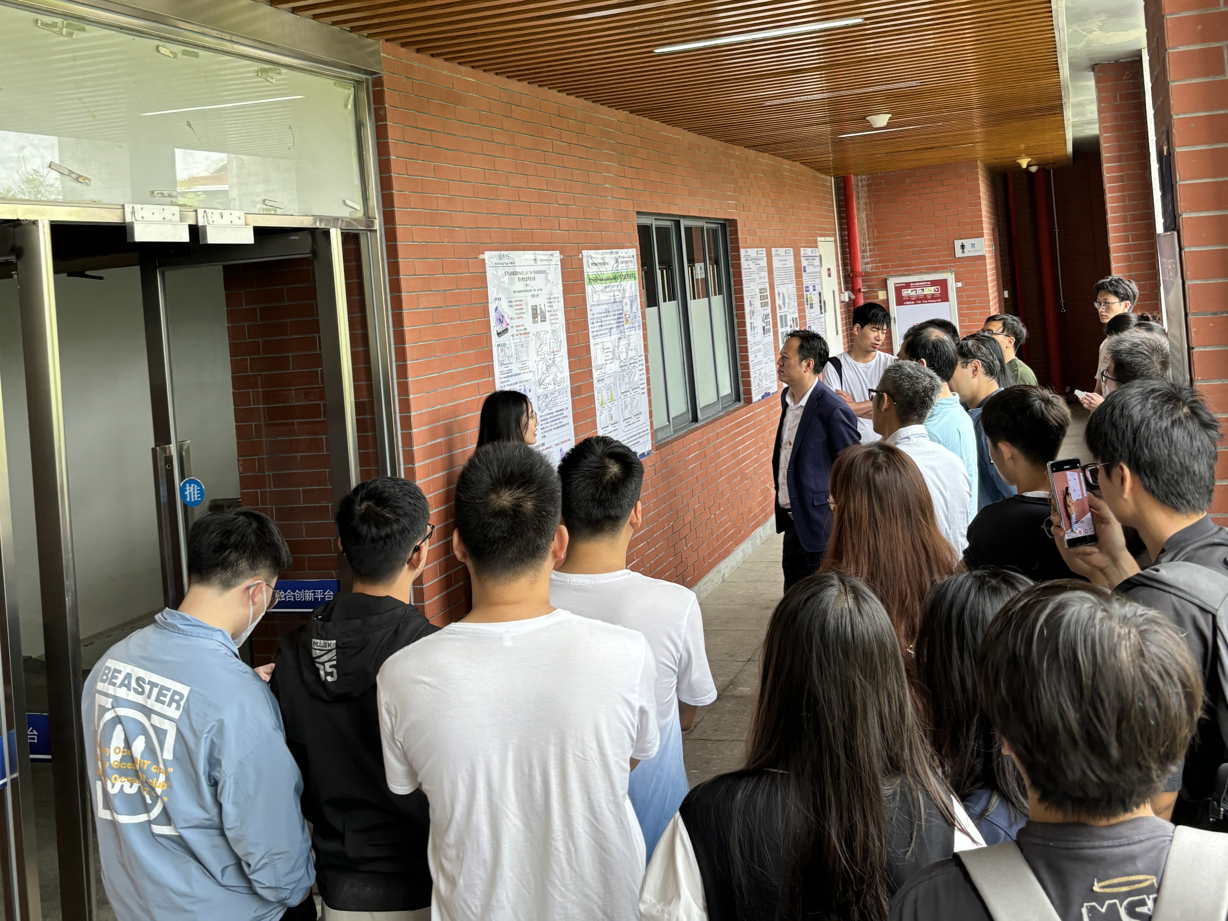 本次学术海报展的研究内容涵盖了芯片设计、机器学习、第三代半导体器件、数据通信和先进封装等技术领域。海报格式规范,内容清晰,成果丰富。活动现场,各位参展博士依次向观展师生介绍科研进展并针对评委的点评现场答疑,评委老师们根据海报设计、科研成果以及学术规范等内容现场打分并评选出优秀海报。