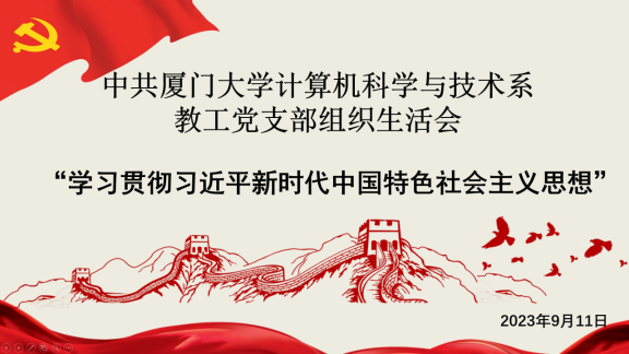 9月11日下午,计算机科学与技术系教工党支部开展专题组织生活会,学习贯彻习近平新时代中国特色社会主义思想。会议在海韵行政楼A306以线上线下相结合的方式展开,支部书记曲延云同志主持本次会议。
