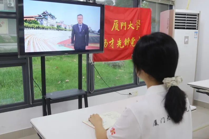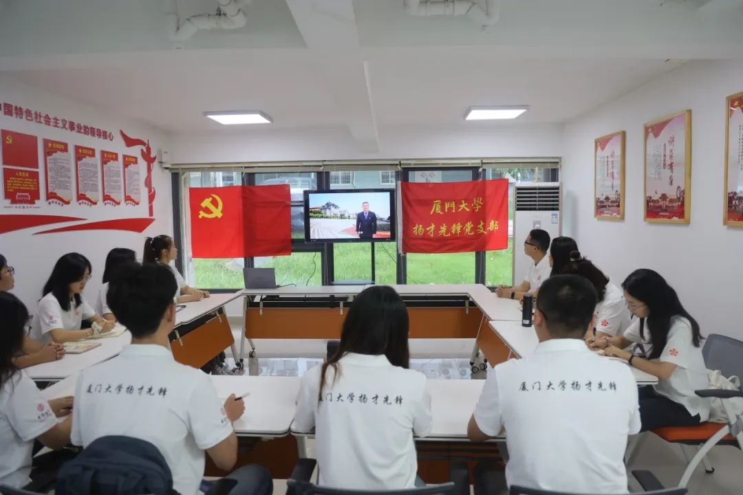 厦门大学“扬才班”组织学员共同收看直播。观看过程中,“小扬才”们聚精会神,共同领悟“教育、科技、人才是中国式现代化的基础性、战略性支撑”的深刻内涵,深入学习与思考教育、科技、人才“三位一体”战略部署在中国式现代化过程中的重要作用,并在观看结束后分享心得感悟。