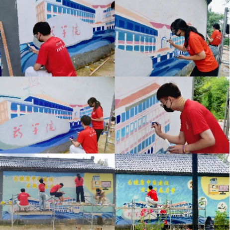 博士团转战村口围墙,在风雨中历时7天,绘制了一幅“药学长卷”。张树村驻村第一书记谢彦贞说:“如今,这里因一群药学青年的到来,变成了最鲜活的文化阵地。”