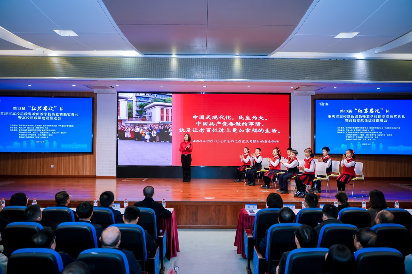 为深入学习贯彻党的二十大和二十届三中、四中全会精神,贯彻落实习近平总书记在全国教育大会上的重要讲话和关于学校思政课建设的重要指示精神,落实全市教育大会和新时代学校思政课建设推进会精神,11月21日,第13届“红岩思政”杯重庆市高校思政课教师教学技能竞赛颁奖典礼暨高校思政课建设推进会在西南大学顺利召开。