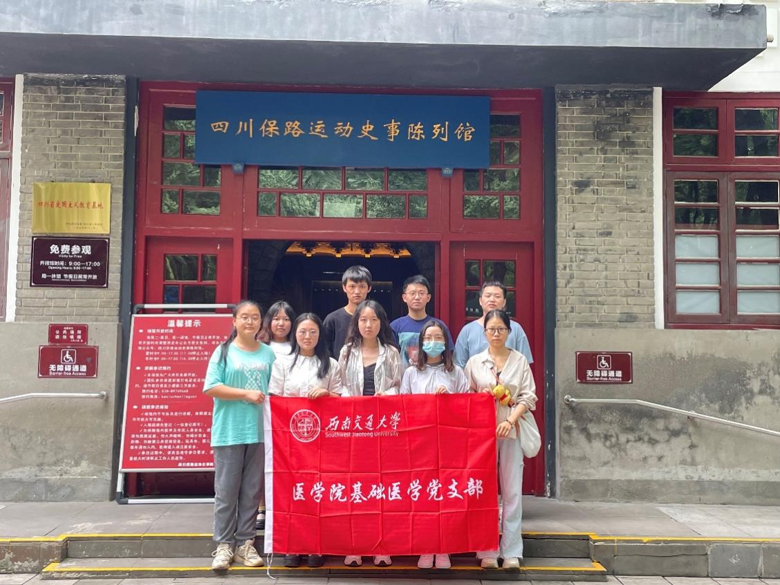 为深入推进学习贯彻习近平新时代中国特色社会主义思想主题教育,进一步加强党性教育,传承弘扬红色革命文化 ,6月20日下午,基础医学党支部以“重温红色足迹,锤炼坚定信仰”为主题,带领支部党员和积极分子共赴四川保路运动史事陈列馆开展了一场别开生面的党日活动。重温百多年前的历史,探寻保路运动背后的往事。