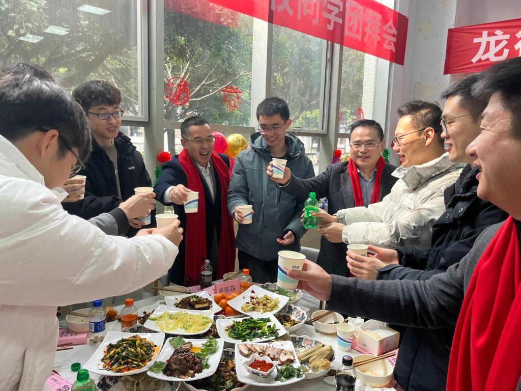团拜会上,张智向参加团拜会的师生致以诚挚的节日问候和美好的新春祝福。他向同学们分享了过去的一年中学院取得的成果,并表示希望同学们在新的一年里以龙腾虎跃的雄风,生龙活虎的干劲,展现石工学子的龙马精神,用青春奋斗续写靓丽新篇章。院领导为同学们送上新年祝福红包,与来自五湖四海的留校学生举杯共饮、互祝新春,共同享用丰盛的午餐,让留校学生也能感受到家的温暖、年的味道。