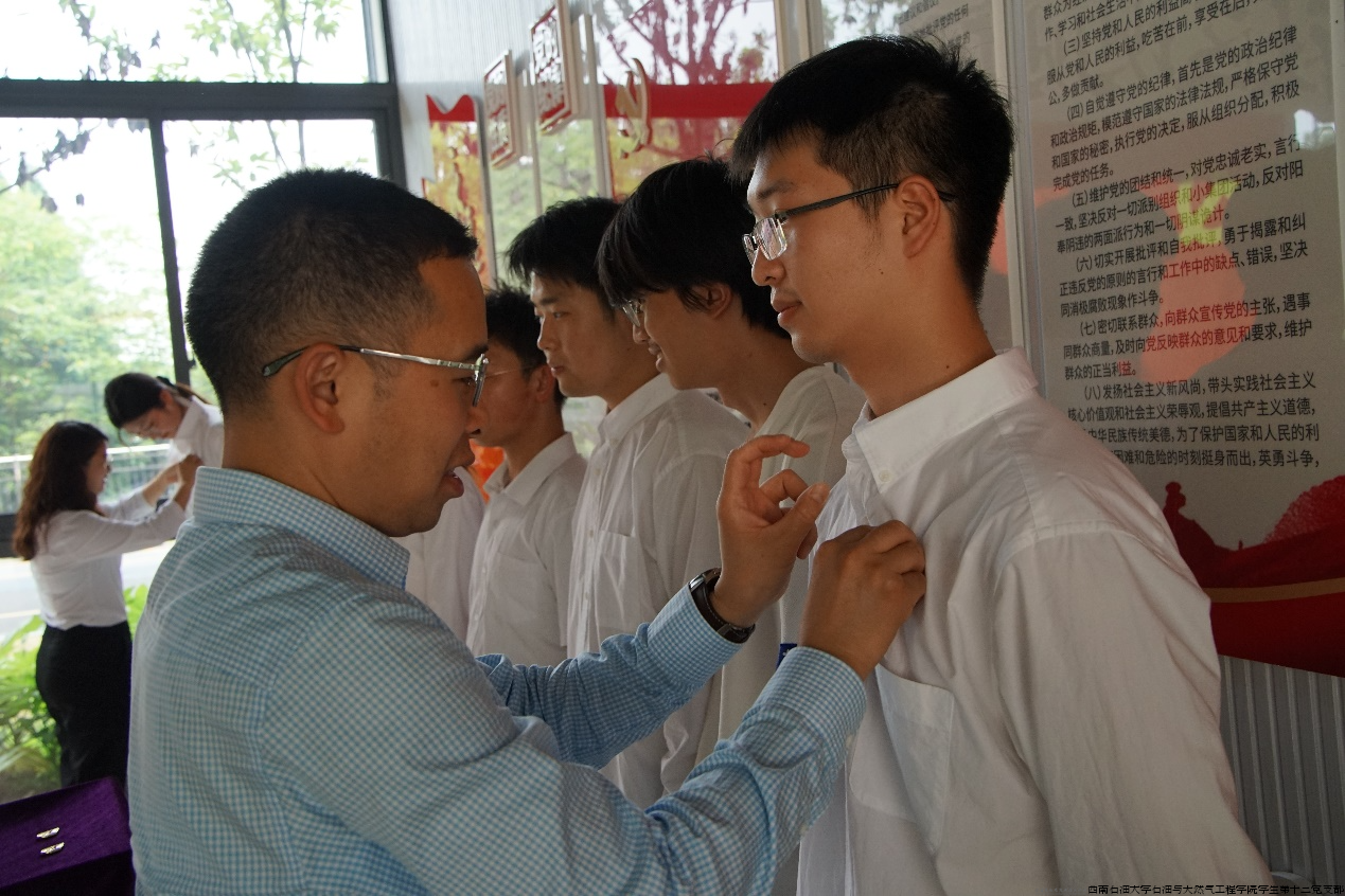 党委副书记钱广和支部书记兰冰芯为新发展党员佩戴党徽