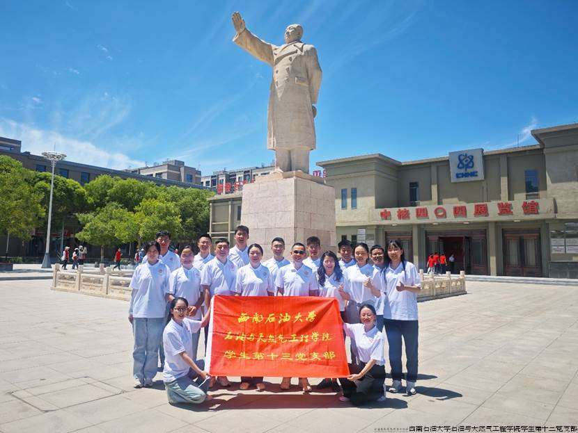 在中国共产党成立103周年之际,为深刻领悟习近平总书记对当代青年的殷殷嘱托,更好落实“学思想、强党性、重实践、建新功”这一主题要求。石油与天然气工程学院学生第十三党支部前往西部红色阵地和油田一线进行社会实践,引导青年学子把爱国情、强国志、报国行自觉融入新时代追梦征程。7月16日,党支部到达第二站—核四〇四有限公司第四分公司。