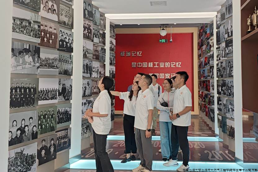 交流会后,实践队相继参观了“同星馆”、“中核四〇四展览馆”和“核城记忆展览馆”。展览馆中记录了中核人“做隐姓埋名人,干惊天动地事”的峥嵘岁月,在讲解员的带领下,实践队细致了解了中核四〇四公司从起步、壮大到如今转型的发展历程。重温了新中国成立初期,国家急需开启核工业建设的历史背景,无数无名的建设者响应“三线”建设的号召赶赴西北嘉峪关白手起家,以钢铁般的意志、无私的奉献精神义无反顾地扎根戈壁、披荆斩棘中成就事业,在茫茫戈壁建起一座崭新的城市。了解了张同星、原公浦等老一辈核工业建设者的事迹,深切领悟了“开拓进取、披荆斩棘、担当实干、为国铸剑”的“同星精神”等革命奋斗精神。