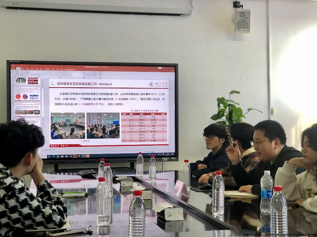 随后,申鑫重点阐述了川大江安本科党支部在党员发展、党史学习和志愿服务等方面的特色做法。他提到,支部始终坚持严把党员发展关,通过严格的谈心谈话和考察机制,确保积极分子和预备党员具备扎实的政治素养和优良作风。同时,支部鼓励学生党员主动学习党史、分享心得,以学促思、以思促行,提升党性修养。此外,支部倡导学生党员在假期积极投身社会服务,以实际行动践行全心全意为人民服务的宗旨,不断强化责任意识和奉献精神。
