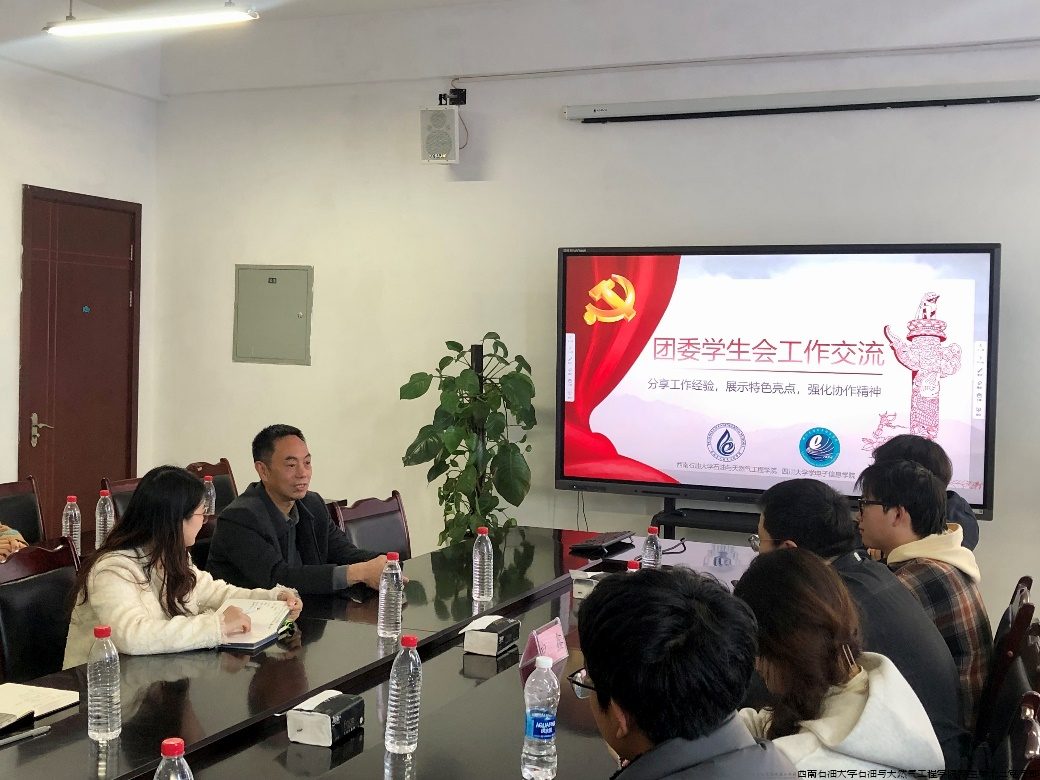 为深入贯彻新时代党的建设总要求,强化基层党支部的战斗堡垒作用。3月24日,石工院学生第十三党支部与川大江安本科党支部在我校明辨楼B519开展联学共建活动。石工院党委书记曾明友、团委书记兰冰芯(学生第十三党支部书记)、副书记张家彬,川大电信院团委副书记、江安本科党支部书记申鑫,以及两支部党员代表、两院团委学生干部代表到场参加。