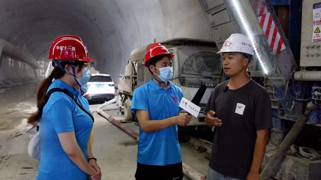 队员们在渝昆高铁重要节点工程缙云山隧道采访工人