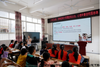 2024年5月30日,心身医学科党支部携手泸州市江阳区法院将心理法治知识带进校园,黄烨前往方山镇小学为200余名学生带来了如何应对考试压力和调节情绪的小方法,为处于困境的儿童提供咨询服务。