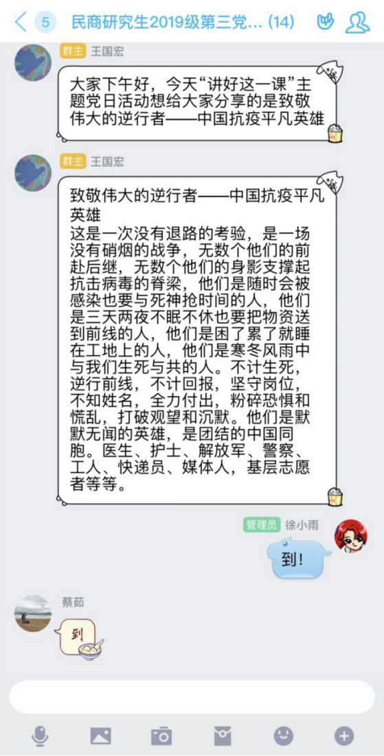 民商法学院党委各个支部没有因为疫情延迟开学,就放松党课和政治学习。