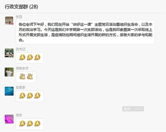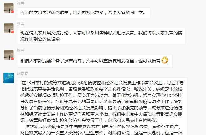 同时,要求各支部开展组织生活,重点学习习近平总书记在统筹推进新冠肺炎疫情防控和经济社会发展工作部署会议上的重要讲话;跟进学习学校近期的防疫工作的相关安排。