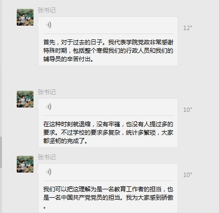 学习最后,学院党委书记张伟莉老师作了总结讲话,她首先肯定了各位党员教师作为一名中国共产党党员的担当,同时也对延期开学期间各项工作提出了要求,对这段时间坚守岗位的党员教师们表达了感谢。