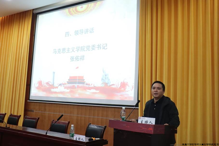 3月24日上午,由湘潭大学数学与计算科学学院、马克思主义学院和艺术学院联合举办的2024年第1期“共建三院党校 共育时代新人”开班典礼暨入党积极分子培训班专题讲座在逸夫楼第一报告厅举行。各院党委书记、副书记、专职组织员和入党积极分子培训班学员、发展对象培训班学员参加。
