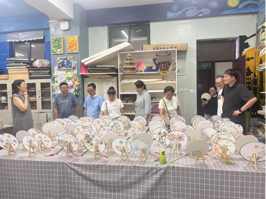 图5 教育科学学院杨婕文带领校友参观学生手工作品