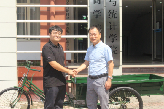 学院副院长皮磊对王川先生的慷慨捐赠表示了衷心的感谢,并高度赞扬了他回馈母校、关注学院的高尚情操。同时,也表示将充分利用三轮车,为学院工作贡献力量,为建设绿色、和谐的校园环境做出更大的努力。