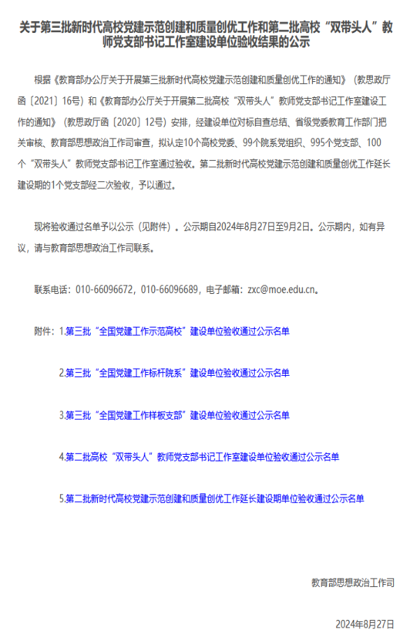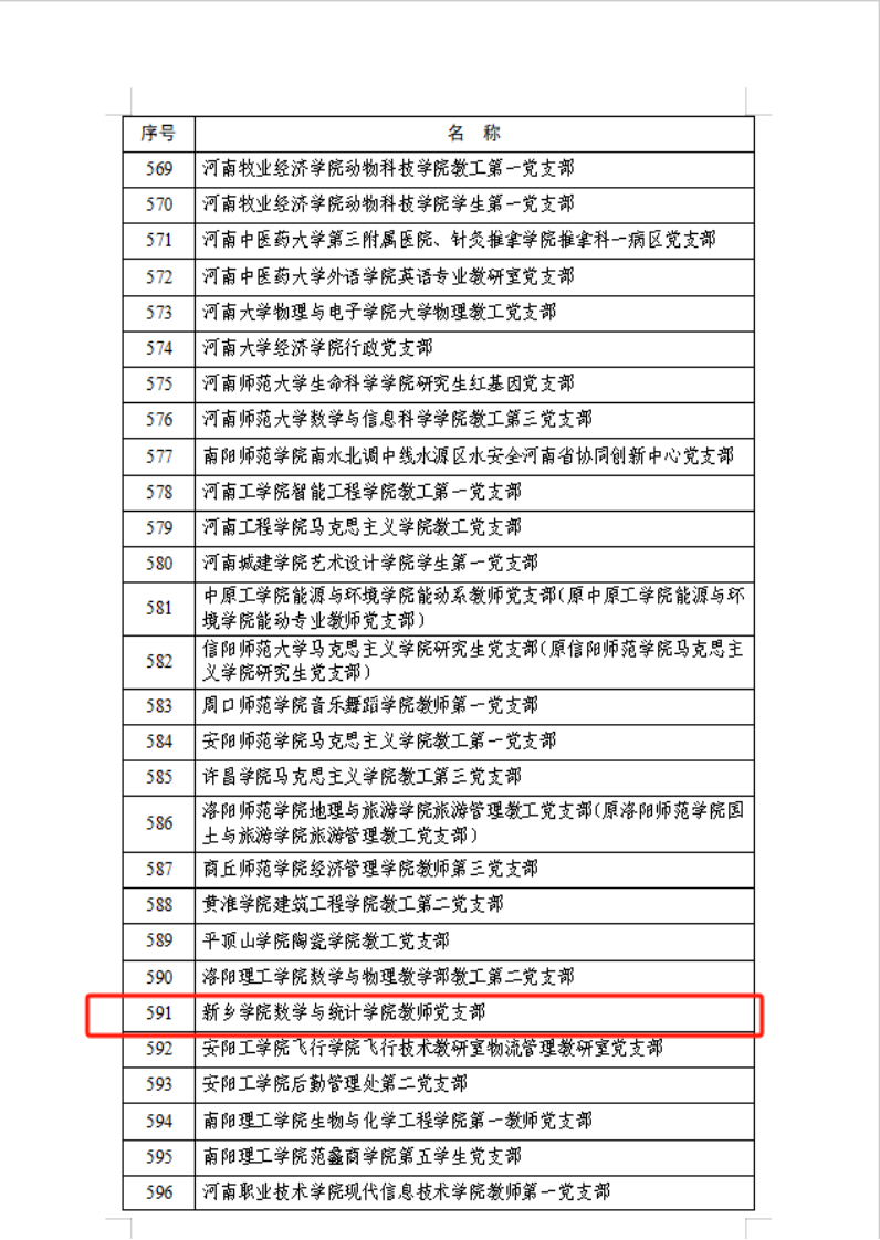 8月27日,教育部思想政治工作司公示了第三批新时代高校党建示范创建和质量创优工作验收结果,新乡学院数学与统计学院教师党支部顺利通过“全国党建工作样板支部”验收。