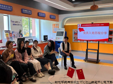 在“共忆入党历程” 环节中,党员严梦怡、郑华雯两位同学结合自身经历,分享了入党心路与成长体会。回忆起初次递交入党申请书时,她们感慨对党组织的向往之情记忆犹新。这份初心促使她们在党组织培养下,积极参与党建实践。严梦怡分享了在 “党员示范岗” 活动中协调同学开展志愿服务的经历;郑华雯作为党员服务站站长,介绍了运营党建宣传平台、组织党史学习教育的工作经验。