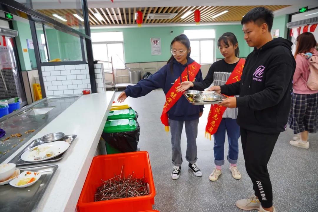 “同学,请在一米线外排队”“您好,餐盘可以在这里进行回收”.......文明校园创建期间,阳光校园里总能听到志愿者各项服务的温馨提示。师生党员们带头行动,对校园用餐、乘车、卫生等进行督导,同时各学院积极组织光盘行动、旧衣回收、垃圾分类、节水节电、主题海报设计等形式多样、载体丰富的文明行动,全方位推进文明校园创建。一系列特色鲜明、内涵丰富、参与度高的创建活动,使文明校园创建工作更接地气、更富有生气。