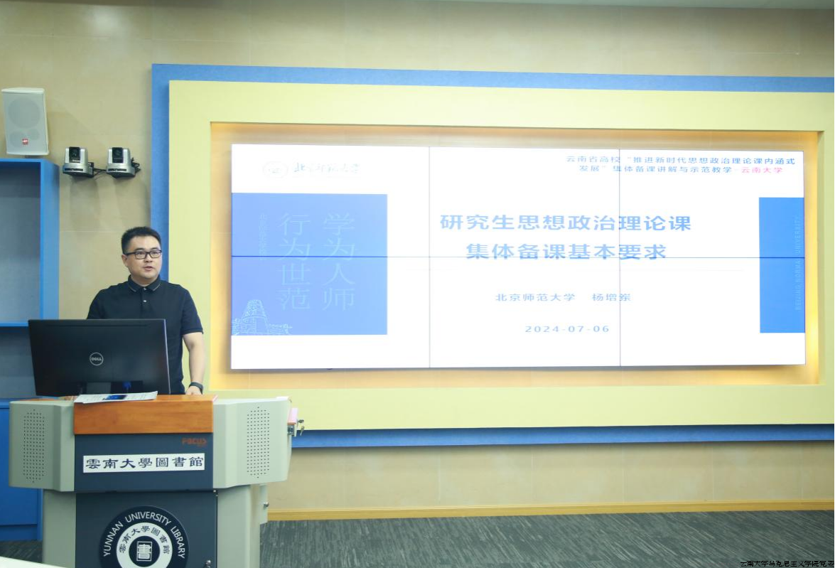 7月6日,云南省高校思想政治理论课“云上大练兵”暨集体备课与示范教学活动在云南大学举办。本次集体备课活动旨在深入学习贯彻习近平总书记对学校思政课建设的重要指示精神,深入贯彻落实新时代学校思政课建设推进会工作要求,落实守正创新推进思政课内涵式发展的具体要求。活动由云南省委教育工委、省教育厅主办,全国高校思政课“手拉手”集体备课中心(云南大学-云南省)、云南大学马克思主义学院承办。活动按第一阶段为教育部高等学校思政课教指委专家指导和主旨发言、第二阶段为教育部高校思政课教学展示获奖教师的示范教学及教学名师点评两个环节展开。活动以线上线下结合的方式进行。根据工作要求,全省高校思政课教师通过教育部思政课集体备课中心平台在线上参与。活动信息通过教育部思政课集体备课中心“云上大练兵”的直播平台向全国发布,全国高校思政课教师登录直播平台参与。