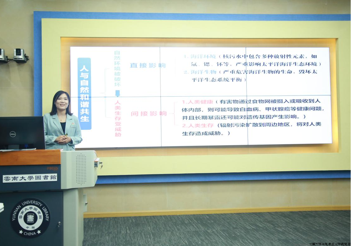 大理大学马克思主义学院陈旭老师结合“习近平新时代中国特色社会主义思想概论”课,以“人与自然和谐共生思想的内涵”为题进行示范教学。