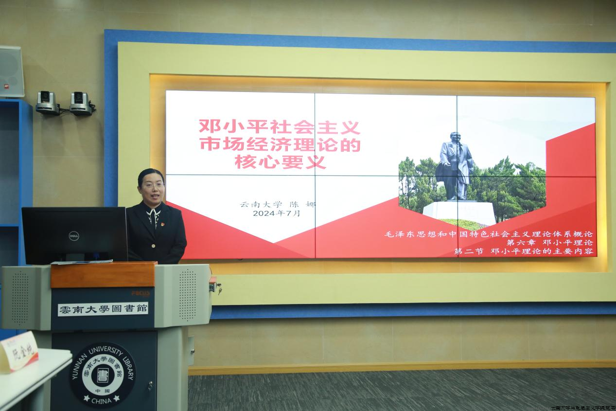 云南大学马克思主义学院陈娜老师结合“毛泽东思想和中国特色社会主义理论体系概论”课,以“邓小平社会主义市场经济理论的核心要义”为题进行示范教学。