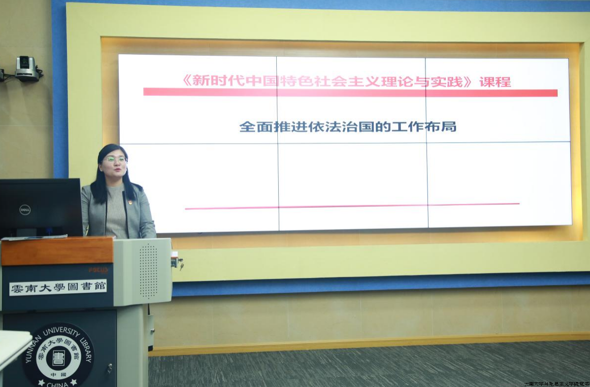 云南大学马克思主义学院王超品老师结合研究生思政课“新时代中国特色社会主义理论与实践”,以“全面推进依法治国的工作布局”为题进行示范教学。