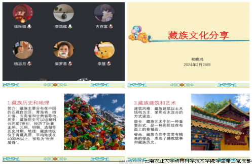 为弘扬少数民族文化,促进民族间的交流和发展,2024年2月28日,动物科学技术学院学生第二党支部以线上会议的形式开展了民族传统文化分享系列活动,由2022级动物科学专业和晓鸿同志主讲。