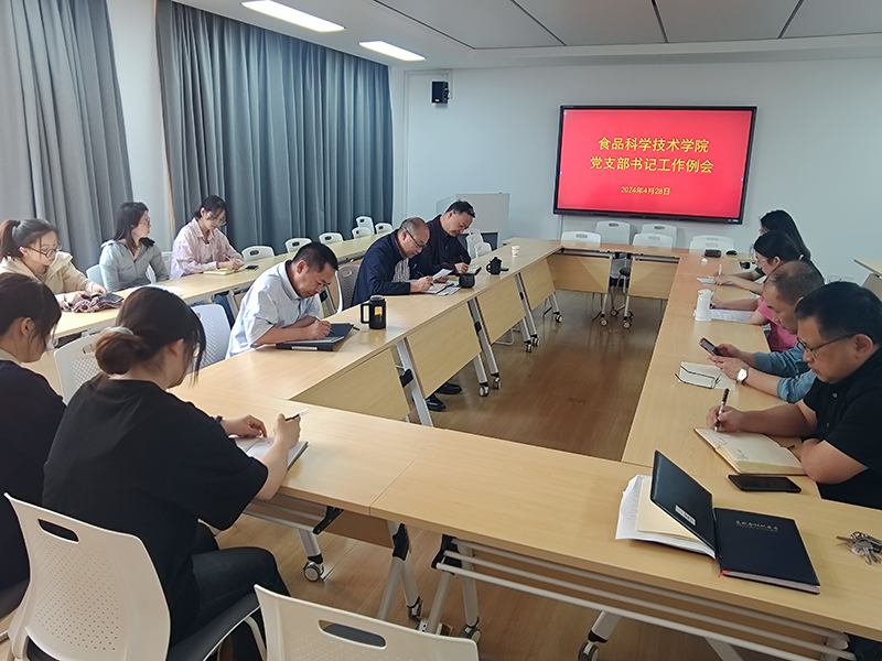 2024年4月28日,食品学院党委在学院二楼会议室召开四月份党支部书记工作例会。会议由学院党委书记李世俊主持,党委副书记黄启超、组织委员董文明、党委委员谭超,各支部书记和支委参加会议。