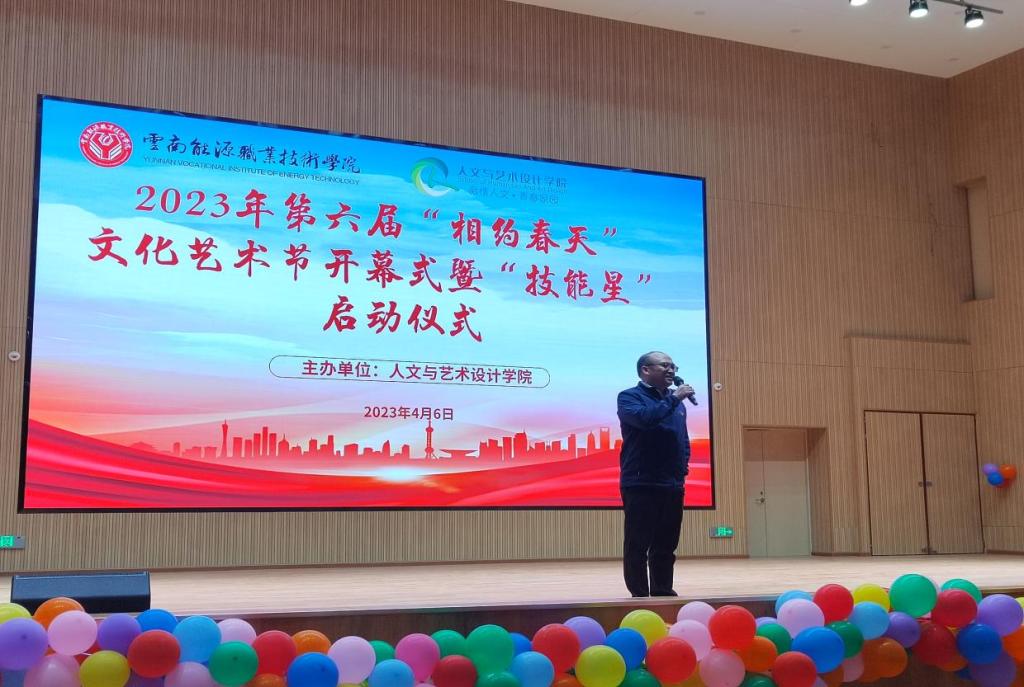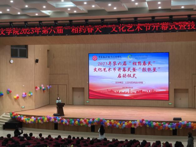 为了丰富校园文化生活,激发同学们的艺术热情,为同学们提供展现才华的平台,4月6日晚,人文学院在沾益校区图书馆报告厅举行第六届“相约春天”文化艺术节开幕式暨“技能星”启动仪式。学校党委副书记史祝云、学生工作处处长杨加友、巡察办副主任滕其维、麒麟区人社局办公室主任张竹仙、麒麟区建宁街道团工委书记贺靖喆、人文学院党政领导及全体辅导员和600余名学生出席了本次活动。