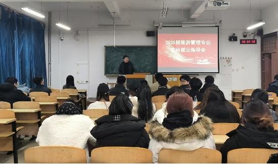 3月5日,经济管理学院旅游系开展了2025届旅游管理专业本科就业指导会。会议由旅游系副主任高磊主持,旅游系党支部书记李凌雁参加会议,本次大会旨在为大四学生提供全面的职业规划指导,同时强调毕业相关事宜。