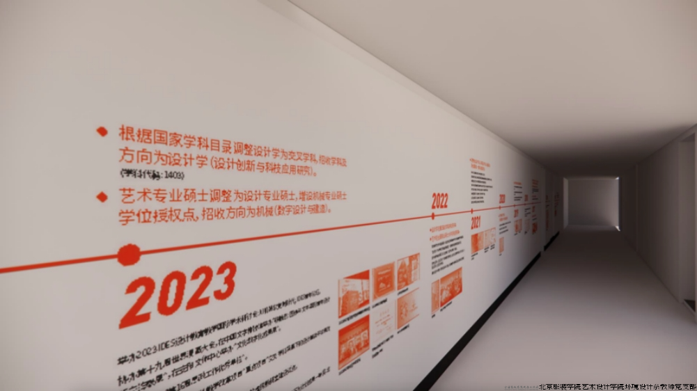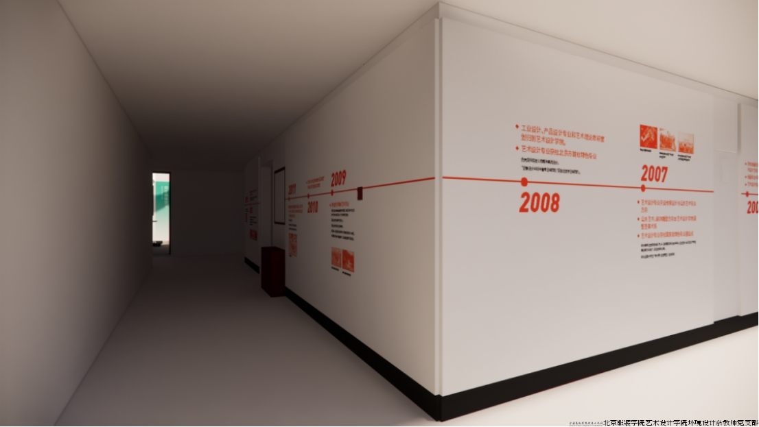 “迴廊”:位于综合楼9层走廊空间,借鉴了中国传统园林中游走观景的空间意象,希望观展者在沿着走廊顺时针环游的过程中,一同回顾艺术设计学院自1988年建院以来的重要历史节点和发展大事记。