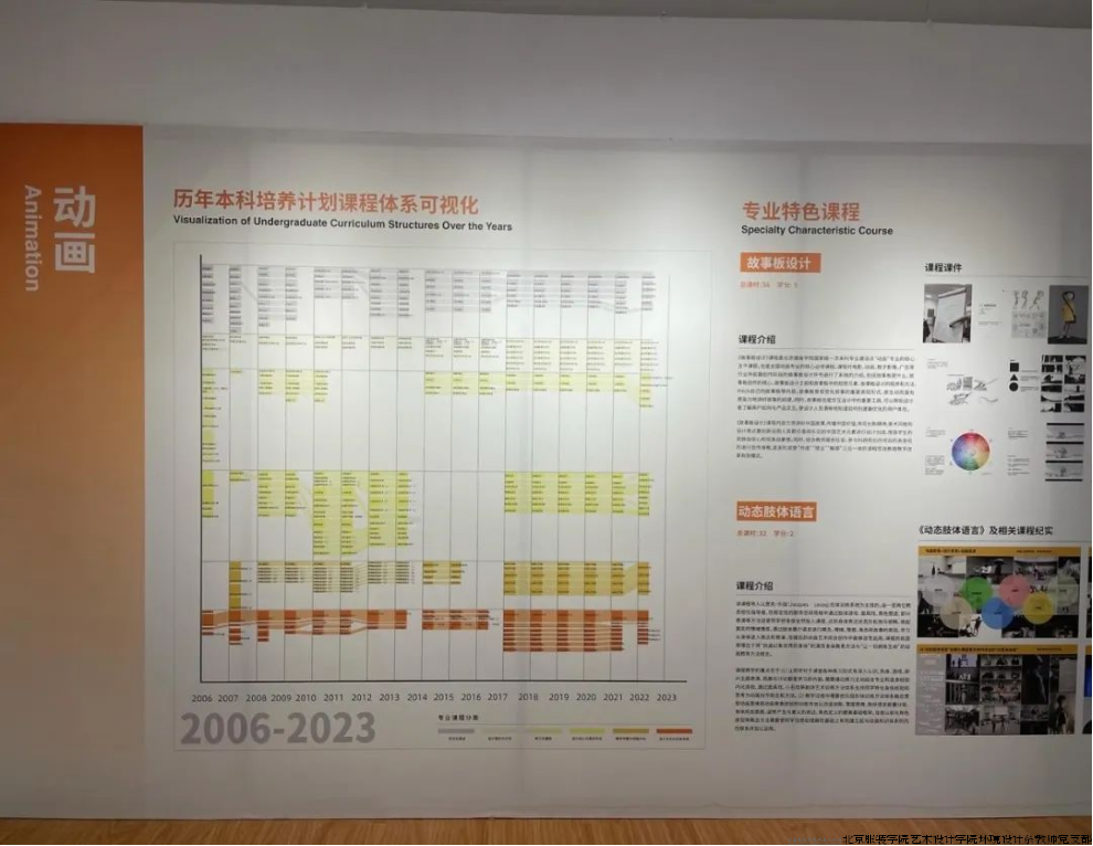 “信息可视化”逻辑的工作让庞杂的、本需要大段文字和语言才能得以阐明的信息,在一种更加有效的可视化方案中,得到简明而准确的传达,建立了信息内所隐含的抽象规律与可直观的形式之间的桥梁。更值得一提的是,此次的信息可视化工作流,在推进展览落地的过程中,还完成了一次定制化的信息整合程序,在这个程序的加持下,课程体系的相关信息可以迅速地生成为有效的可视化图像。