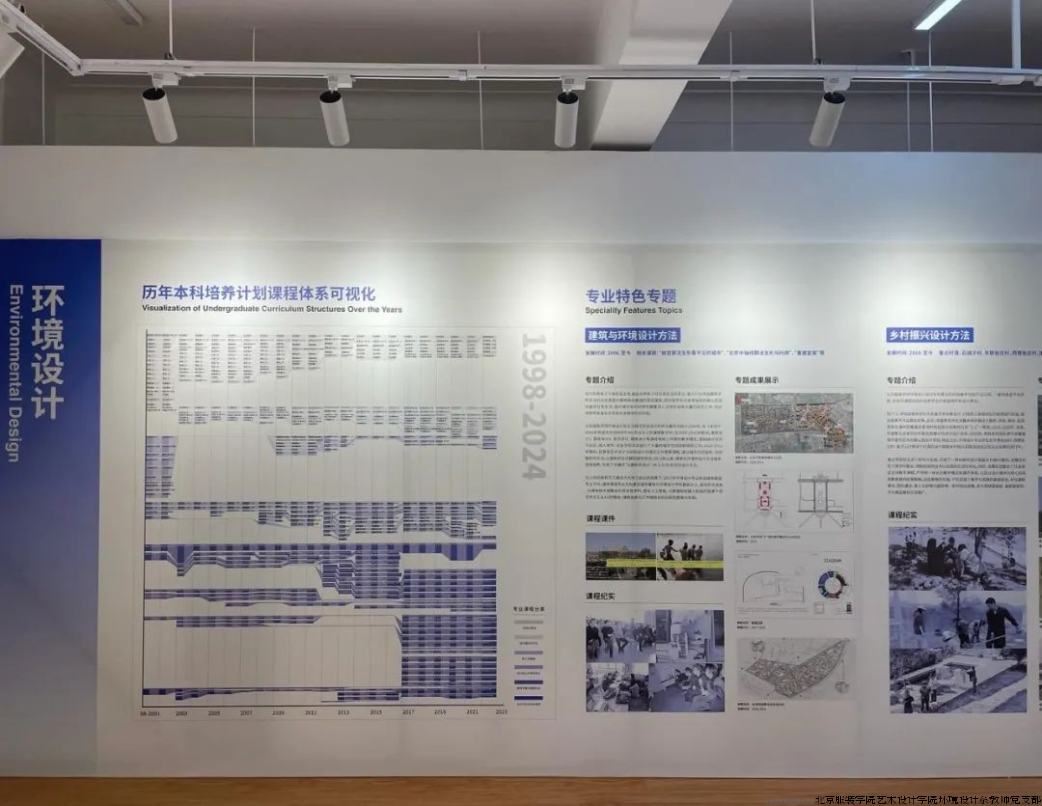 “艺社”:位于综合楼14层公共走廊环绕的中央空间。展示了自80年代以来的优秀学生作品选,在这些作品中可以看到从手绘到数字化再到AI技术的表达工具变化,也可以看到课程所关注的问题的发展。它们作为重要文献,反映了学院人才培养与发展的历程,展示了教学与时代变化的共振和师生们对创新的不懈追求。