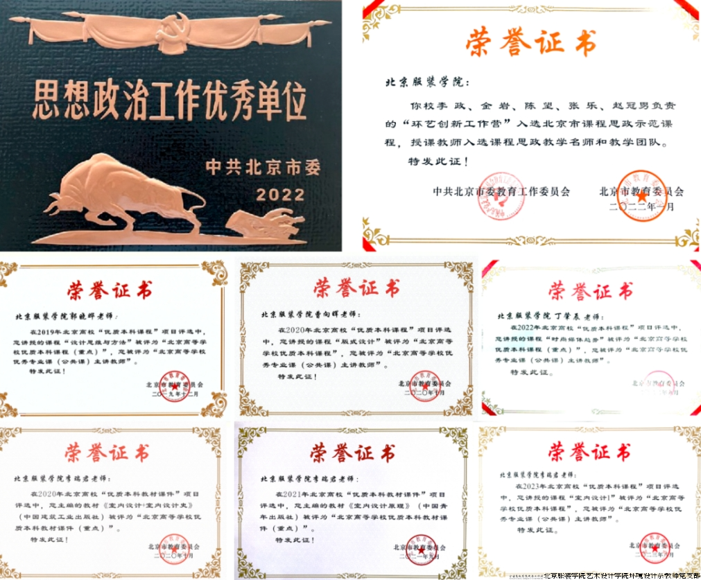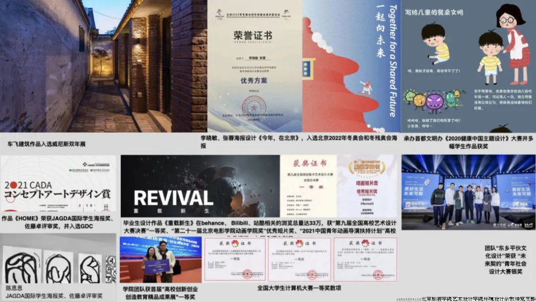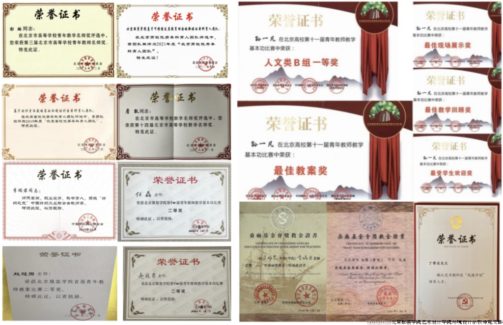 未来设计师全国艺术设计教师教学国家级课题赛道一等奖1项、二等奖1项,案例赛道一等奖1项;北京市级奖项9项