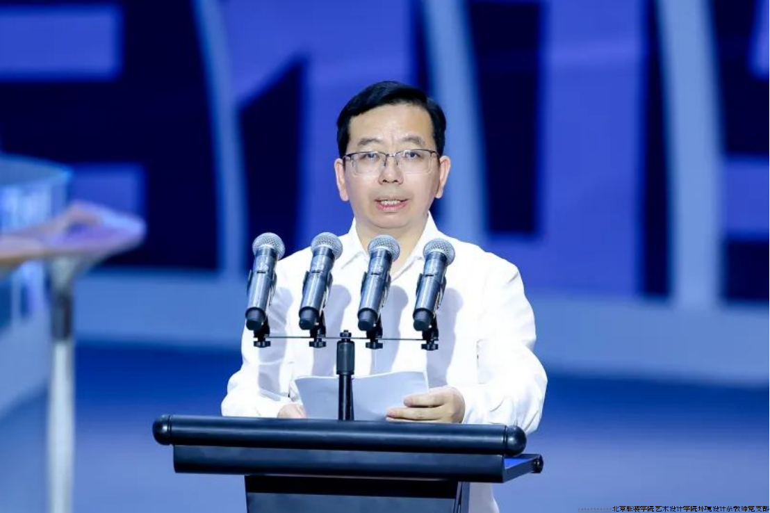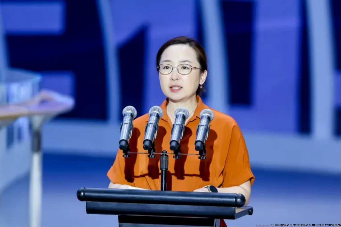 北京服装学院研究生院院长兰翠芹发布高层次人才培养在学术研究、技术创新、艺术创作等领域的十大师生成果,并倡议发布《“时尚海淀”设计赋能行动宣言》,推动产学城融合创新,构建科技、教育、人才一体化创新体系。